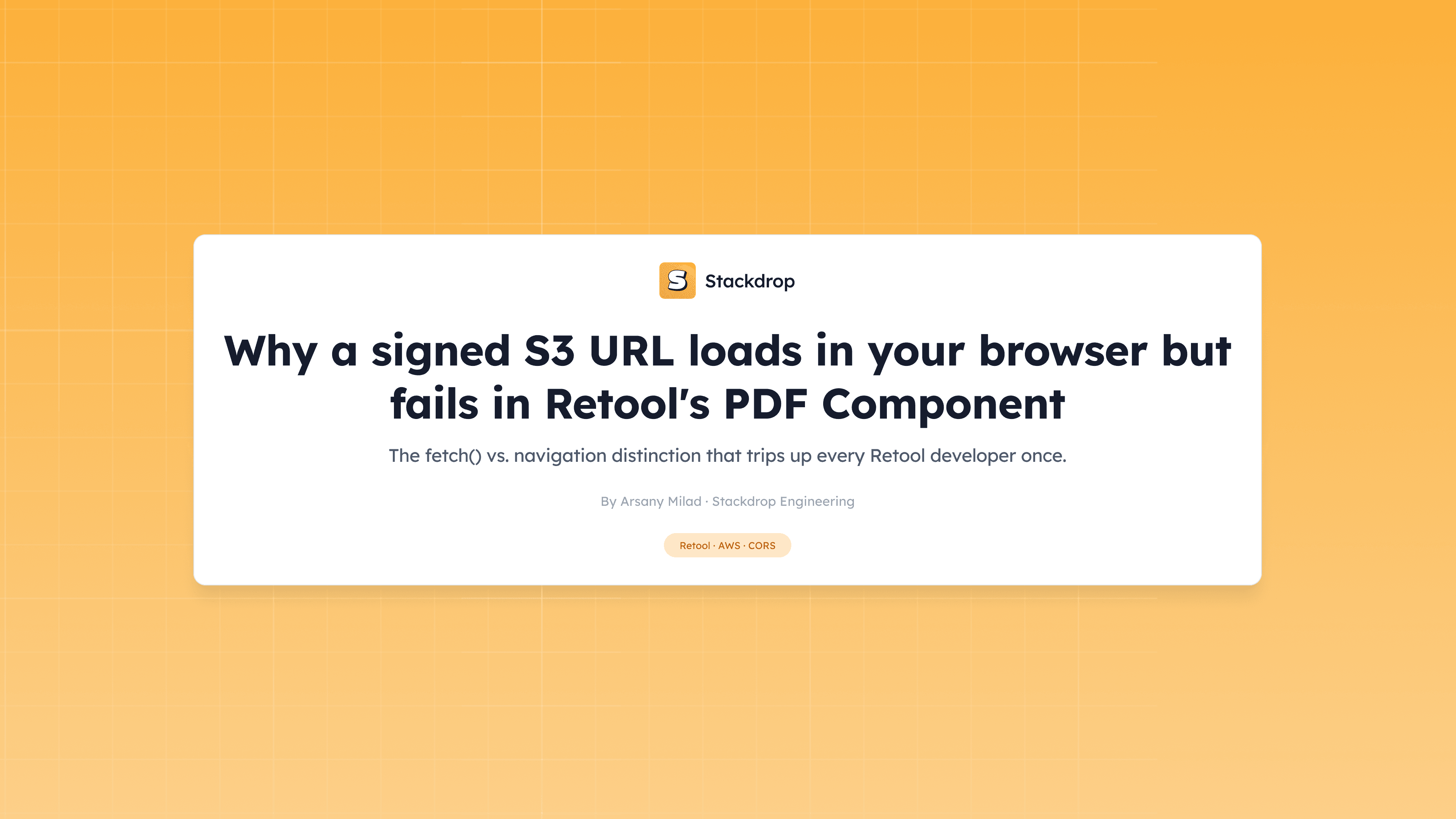 Retool's PDF component uses fetch() to load files. Browsers enforce CORS on fetch requests. If your S3 bucket isn't configured to allow requests from Retool's origin, the request gets blocked silently and the component renders nothing. Adding Retool's domain to the bucket's CORS configuration fixes it.